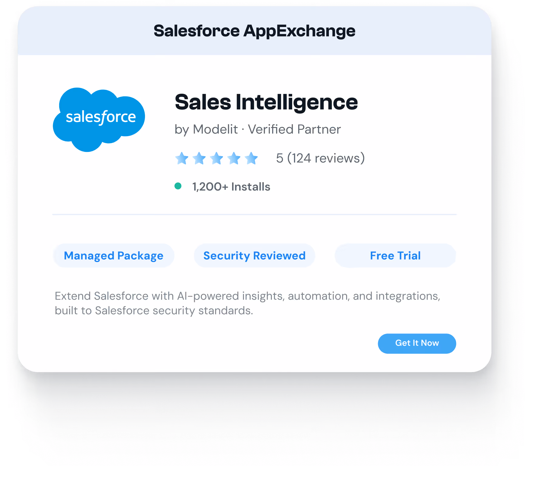 Salesforce AppExchange is a powerful channel for extending Salesforce and delivering value to customers. Modelit helps you bring your app to market the right way and keep it successful over time.